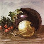 El terreno en el primer término se rellena con una aguada irregular de verde inglés, naranja de cadmio y amarillo de cadmio. Puede observarse cómo algunas zonas contienen más cantidad de pigmento naranja y otras son más verdes. A la parte inferior derecha se le añade una buena cantidad de agua; con ello se aclara el color y se crea la impresión de que la luz solar cae sobre la hierba.